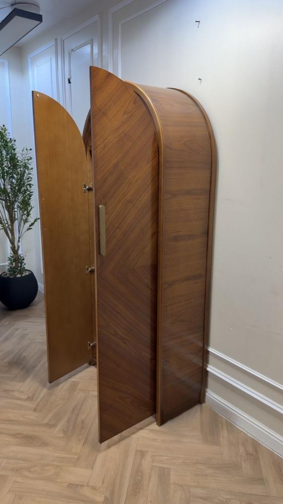 📝 الوصفدولاب بذوق عصري وتصميم متقن، مصمم من قشرة خشب الجوز عالية الجودة مع إطار مقوس أنيق يُضفي طابعاً فريداً على المساحة. مناسب لتعليق العبايات والملابس الطويلة، بتصميم دون أدراج ليستغل المساحة بذكاء. أبعاده: