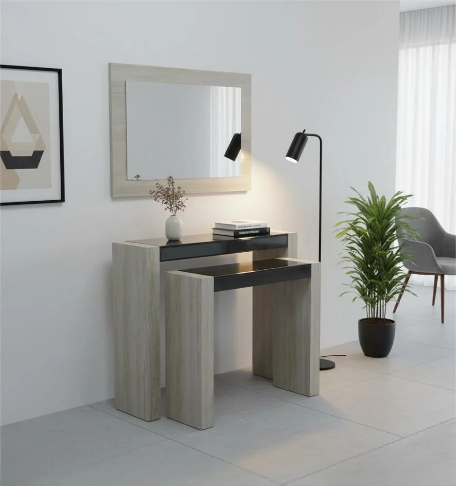 - سطح زجاج أسود لامع يضيف عمقًا وجاذبية للمكان.