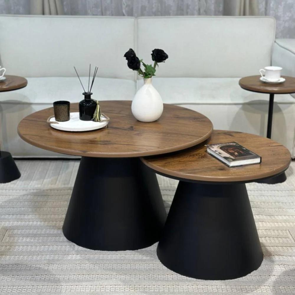 تصميم أنيق وعصري : يجمع بين السطح الخشبي البني والعمود الأسود، مما يضفي جمالية وفخامة على أي مساحة.